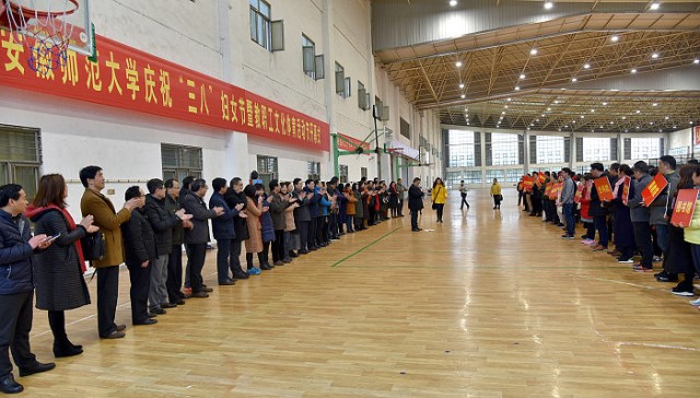 本网讯(校工会 吴佑平)三月的师大,万物复苏,春意盎然。正当全校上下热切关注全国“两会”胜利召开、喜迎建校90周年之际,我们又迎来了第108个“三八”国际劳动妇女节。3月7日下午,花津校区北侧体育馆内人声鼎沸,气氛热烈,悬挂着的大幅标语鲜红醒目,学校庆祝“三八”妇女节暨第七届教职工文化体育活动节开幕式在这里举行。参加活动的有校领导顾家山、张庆亮、李琳琦、毕明福,各学院、各单位负责人,各分工会主席、女工委委员和广大教职工。
