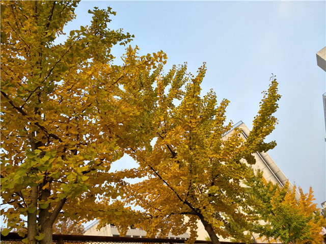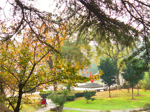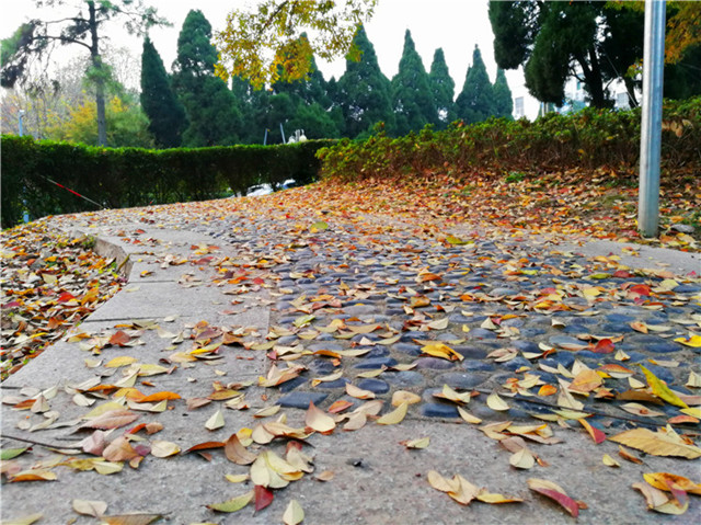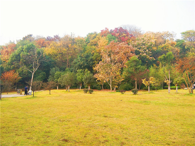 赭山校区图书馆旁草坪 近山草木秀,深秋色斑斓