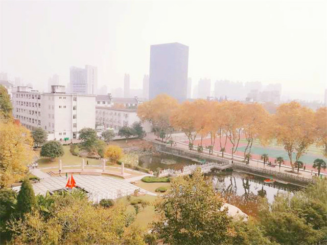 鸟瞰赭山校区荷花塘 秋高气爽、满眼金秋