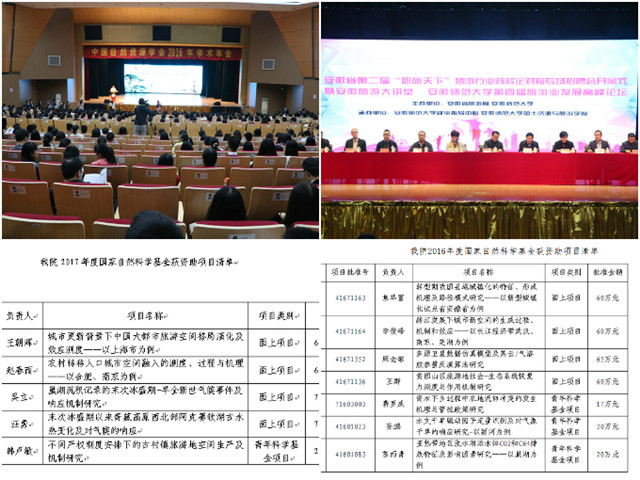 科学研究需要人才、平台、项目、资金的投入,更需要有高水平的成果产出。五年来,学院科研实力显著提升,拥有旅游发展与规划研究中心安徽省高校人文社会科学重点研究基地、资源环境与地理信息工程安徽省工程技术研究中心、自然灾害过程与防控研究安徽省省级重点实验室、地理过程虚拟仿真实验教学中心安徽省省级质量工程、地理空间信息应用安徽省教育厅高校科研创新平台团队等省级科研平台。学院拥有土地规划设计甲级资质和旅游规划设计甲级资质。拥有人文地理学博士授权点,形成了本科—硕士—博士完整的人才培养体系。2014年,地理学科被评为安徽省省级学科建设重大项目。2012年以来,学院共承担国家自然科学基金项目49项,其中国家自然科学基金重点项目1项,省部级项目52项;发表学术期刊论文800余篇,其中SCI(E)、SSCI、EI、CSSCI以及一级期刊发表论文100余篇,共获省部级奖项18项,出版国家级规划教材和学术专著10多部,获得专利授权2项、软件著作权9项,获得安徽省教学成果一等奖和二等奖各1项。根据国内地理学权威期刊《地理学报》2016年第4期载文,地理学EI论文数量安徽师范大学排名全国第8位;据《旅游学刊》2015年第12期载文,近十年我国旅游学术共同体成果的h指数安徽师范大学排名全国第2位。