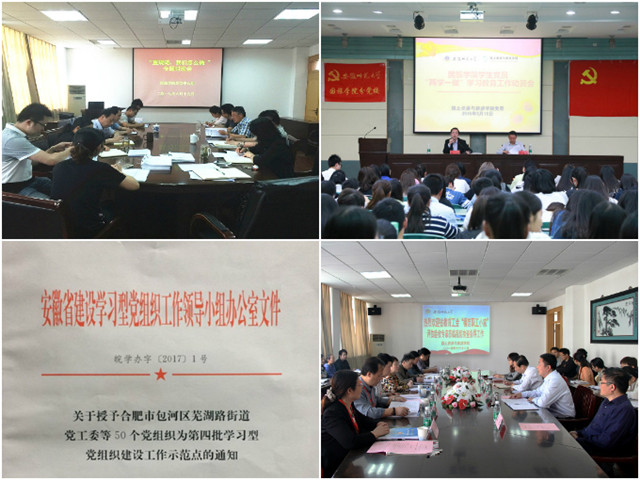 五年来,国旅学院党委高度重视学习型党组织建设,坚持“围绕发展抓学习,抓好学习促发展”的总体思路,大力倡导“主动学习,全员学习,终身学习”的理念,以扎实开展“两学一做”学习教育为契机,着力从学习型党组织建设的新体系、新内涵、新途径、新成效等方面多措并举,全力打造学习型党组织建设“常态化”,努力将学院党委建成引领政治事业“齐奋进”、教学科研“双丰收”、师生员工“共成长”的战斗堡垒。学院坚持领导示范抓学习,构建学习型党组织建设新体系实施“一把手”工程,推进学习全员化;建立“三纳入”制度,推进学习常态化;构建“三维”模式,推进学习精细化。学院党委坚持围绕中心抓学习,提升学习型党组织建设的新内涵。将学习型党组织建设贯穿人才、教育教学、科学研究、社会服务全过程。学院党委坚持方法创新抓学习,拓展学习型党组织建设新途径。开启“互联网+党建”的学习模式;开发“特色讲党课”信息软件;开设“两学一做”微信公众号;开展学生党员“五微五计划”、“送党课到实习点”活动。通过近年的努力,学院业已形成良好的发展氛围,学习型党组织建设取得了新成效。主流媒体报道多。人民网、中国青年网等主流新闻媒体先后100余次报道学院“两学一做”学习教育。1位党员教师获省“优秀共产党员”荣誉称号,9位党员教师获校“优秀共产党员”称号,2位党政干部获评校“优秀党务工作者”。学院曾荣获安徽省教育工会“模范职工小家”荣誉称号、校2015年先进基层党组织等。在 2012和2014年学校综合评比中两度荣获一等奖。2017年,学院党委作为全省高校四个党组织之一获“安徽省第四批学习型党组织建设工作示范点”称号。