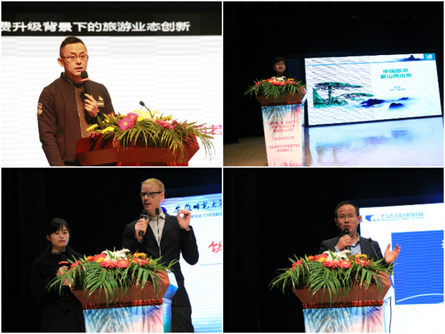 随后,安徽省旅游人才培养示范基地揭牌仪式隆重举行,王靖和李琳琦共同为我省首个旅游人才培养示范基地揭牌。在接下来的安徽旅游大讲堂暨旅游业发展高峰论坛中,景域集团副总裁、驴妈妈旅游网联合创始人李丹,黄山旅游集团公司党委委员、股份公司党委副书记、纪委书记裴斌,无锡凯宾斯基饭店总经理库尔特·威伦,安徽万达环球国际旅行社有限公司董事长徐华玉分别做了精彩的主旨演讲。