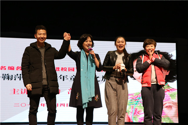 “大头儿子,小头爸爸,一对好朋友快乐父子俩……”。鞠萍唱着经典动画片《大头儿子小头爸爸》的主题曲欢乐亮相,熟悉的音乐瞬间唤醒了观众的儿时记忆。她饱含深情地回顾了自己的求学生涯和工作经历,从业30多年来,小朋友们写给她的每一封信自己都一一看过,并有一半亲自作了回复,家中近60个装满观众来信的沉甸甸的文件袋,是她最珍爱的宝贝。“这些信胜过所有荣誉,因为这是我收获的爱,是我成长的动力。”“鞠萍姐姐”用自己的言行告诉在场的学生,正是对工作的热爱和对他人的尊重,成就了自己的事业。