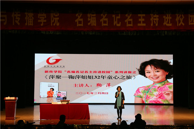 本网讯(文/图 孙月婷 付泽兰)3月4日晚,花津大礼堂座无虚席,备受观众喜爱的央视著名主持人鞠萍走进师大,应邀为新传学院师生带来“萍聚——鞠萍姐姐32年童心之旅”的专题报告。此次讲座是新传学院开展的“名编名记名主持进校园”系列活动之一,讲座由新传学院院长杨柏岭主持。