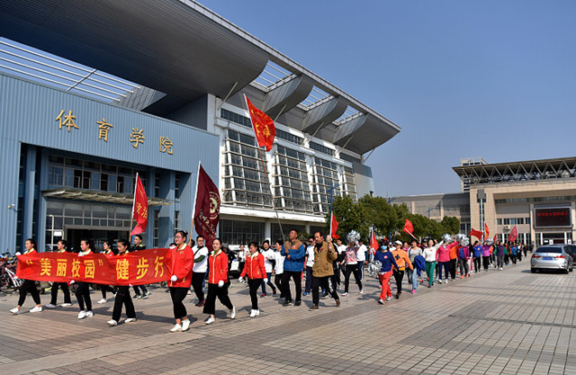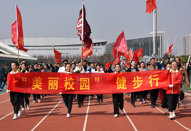 教职工“美丽校园健步行”拉开了活动的大幕。来自学校各分工会代表队近千名运动员汇集花津校区田径运动场,随着校工会主席赵红的发令,在队旗的引领下,组成方队,精神抖擞,神采飞扬,迈着矫健的步伐,沿着花津校园主干道行进,为校园春色增添了一道亮丽的风景线。