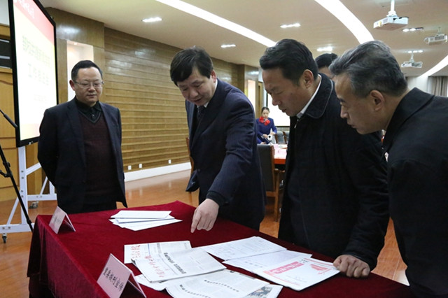 离开实验楼,虞爱华又参观了部校共建成果展,30余块展板分6大版块详细记录了共建以来的学院建设发展历程,50余份原始材料分4个部分完整诠释了在以省委宣传部为首的“4+1”共建领导机制下,安徽部校共建在打造一流新闻学院、培养卓越新闻传播人才道路上取得的阶段性成果。虞爱华一边听一边看一边问,不时了解具体情况,对共建成果表示充分肯定。