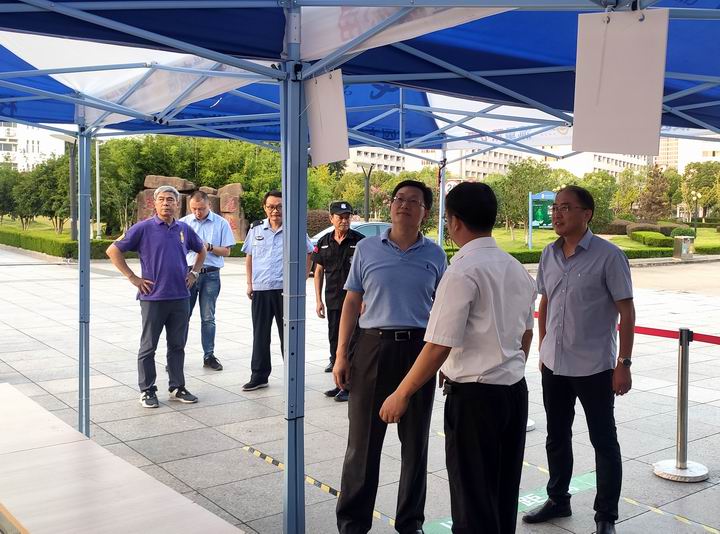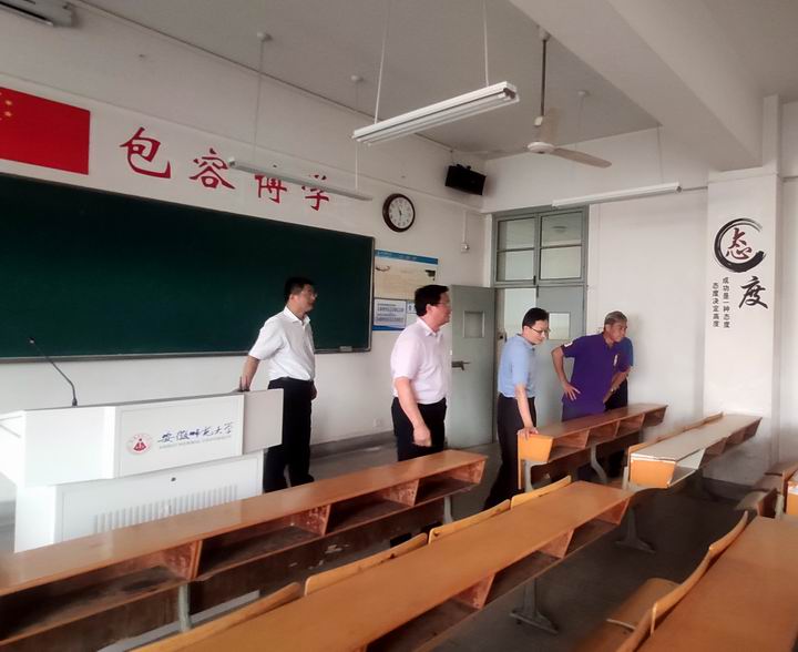 张庆亮一行先后来到花津校区行知教学楼、学生第一食堂大楼、学生第二食堂大楼、洗理中心、西大门学生返校通道和赭山校区田家炳教学楼、学生食堂大楼、学生宿舍八号楼、东大门学生返校通道等处实地查看,在检查过程中,张庆亮仔细询问了学校新旧物业交接和餐饮服务企业进驻情况,详细了解了教室、物业、宿舍、餐饮、洗浴、疫情防控等工作的准备情况,在听了相关部门负责人汇报后,张庆亮对新学期各项保障工作准备情况表示肯定,向同志们的辛勤付出表示感谢。张庆亮指出,当前疫情防控形势依然十分严峻,常态化疫情防控任务非常艰巨,各项防疫措施一刻也不能放松,张庆亮要求相关部门要继续落细落实各项保障工作,为新学期开学提供坚强后盾和有力保障,坚决打赢全面复学和疫情防控双战役。