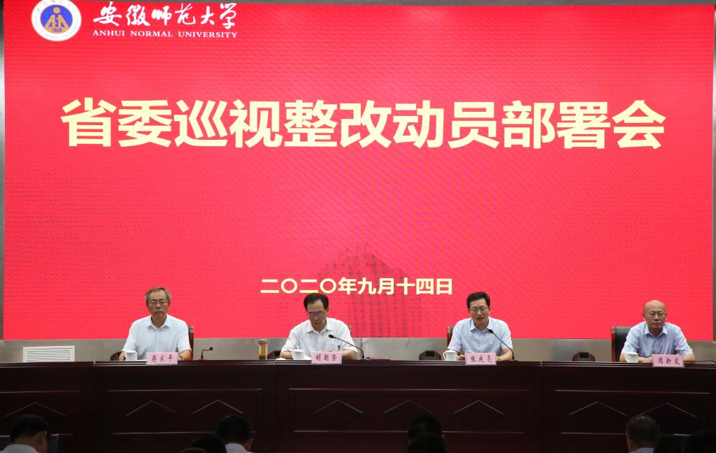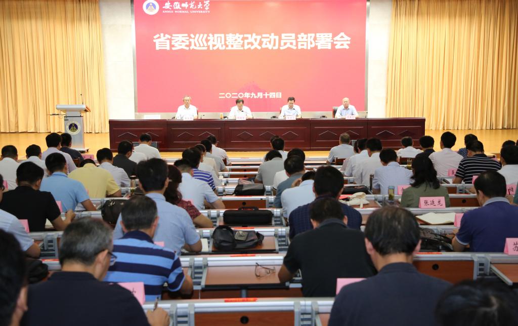 按照省委统一部署,省委第八巡视组于2020年5月8日至7月10日对我校进行了专项巡视。9月10日,省委第八巡视组召开了反馈大会,向我校反馈了巡视情况。9月11日,学校召开专题党委常委会,学习习近平总书记关于巡视工作重要论述,传达学习省委书记专题会议和巡视反馈会上有关领导同志讲话精神,研究谋划学校巡视整改工作。学校此次召开省委巡视整改动员部署会,是认真贯彻落实习近平总书记关于巡视工作重要论述和考察安徽重要讲话指示精神,深入推进学校全面从严治党、加快推进高水平大学建设的有力举措。