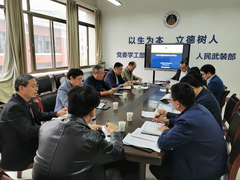 本网讯(学生工作处 项家春 金捷)10月21日上午,学校在花津校区学生处会议室召开2020年国家奖助学金评审会,校党委副书记蒋家平,校纪委、教务处、科研处、财务处、团委等单位主要负责人,教师代表路丙辉教授、曹明响教授,学生代表2017级法学专业张万红、2017级新闻学(中外合作)专业季行健参加会议。会议由学生处处长、评审委员会办公室主任刘晓宇主持。