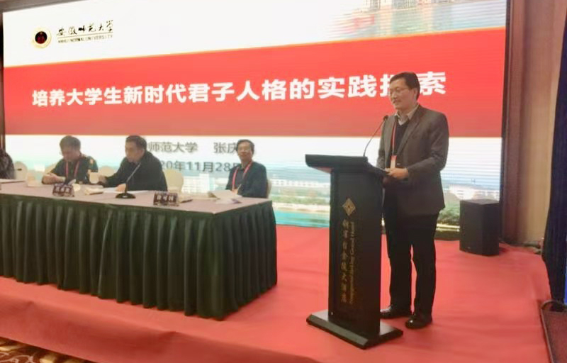 张庆亮以“培养大学生新时代君子人格的实践探索”为题,从“‘君子人格’内涵的历史演进”“为什么要培养大学生‘新时代君子人格’”“培养大学生‘新时代君子人格’的路径探索”三个方面全面阐述了“新时代君子人格”有新的内涵,指出高等学校要培养大学生“新时代君子人格”,为培养德智体美劳全面发展的社会主义建设者和接班人打下坚实的基础。
