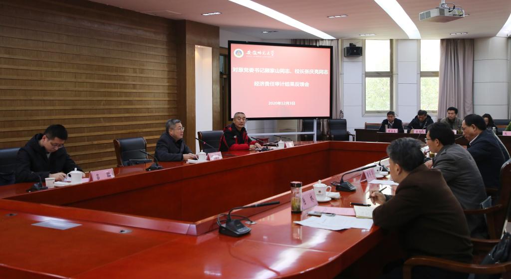 校党委副书记、校长张庆亮作表态发言。他说,程厅长代表审计组反馈了审计结果,提出了整改意见,为我们依法依规办学治校指出了“病灶”,开出了“良方”,对于学校进一步防控财经风险、规范工作运行、推动内涵发展具有十分重要的指导作用。对高校而言,开展审计整改的过程,就是自我改进、自我提高、自我免疫的过程,也是不断完善学校治理体系、提高治理能力的过程,有利于学校防范化解财政经济风险,有利于提高科学决策、民主决策、依法决策的水平,有利于推进学校事业高质量发展。作为学校法定代表人和财经工作主要负责人,对于审计组反馈的结果,我诚恳接受、照单全收,严肃对待、坚决整改。坚持全面整改,确保无遗漏;坚持限时整改,确保不拖延;坚持质量整改,确保改到位;坚持长效整改,确保管长远。张庆亮表示,下一步,将以高度的政治自觉、强烈的责任担当、严实的工作作风,坚定不移抓好审计整改工作,认真学习贯彻党的十九届五中全会和省委十届十二次全会精神,坚持在学校党委的全面领导下,依法行使校长职权,强化学校内部审计监督,不断提升财经风险防范能力,自觉接受师生和社会监督,着力在补短板、强弱项、打基础、促发展上下功夫,攻坚克难、知重负重,履职尽责、从严要求,奋力开创国内一流、特色鲜明高水平大学建设新局面。