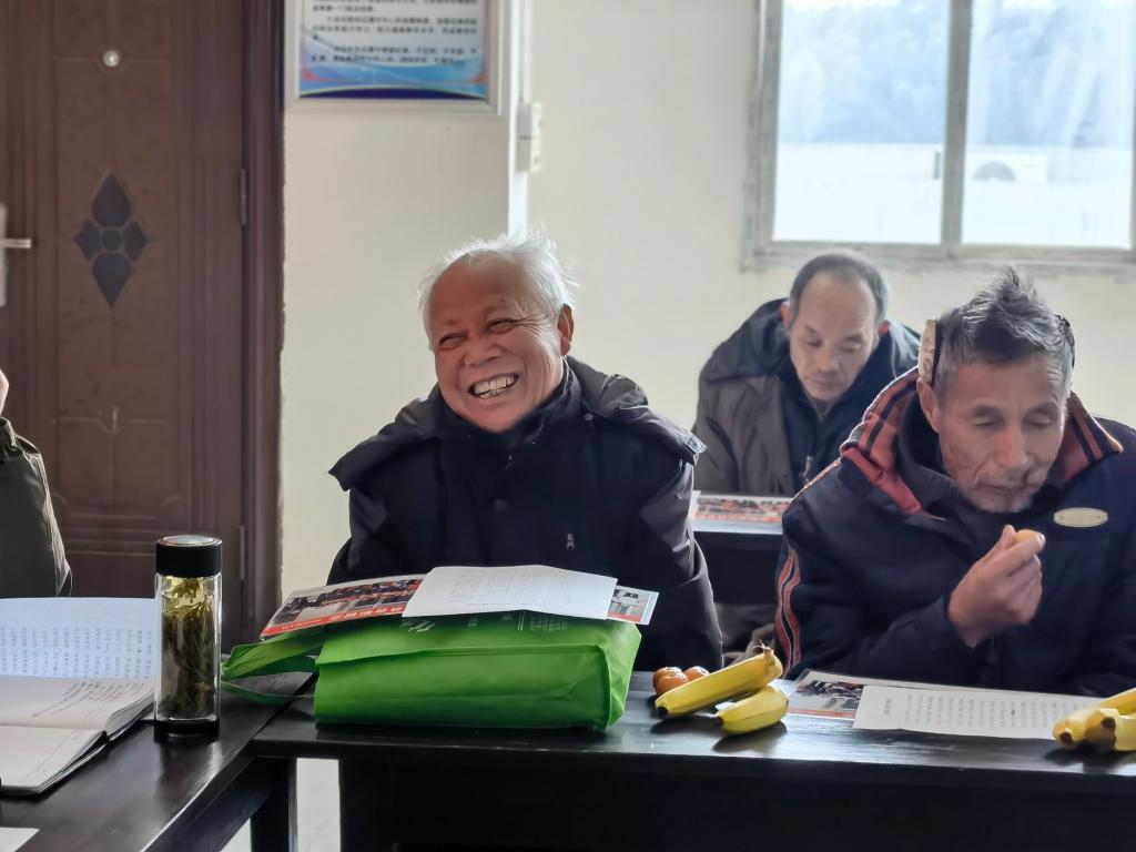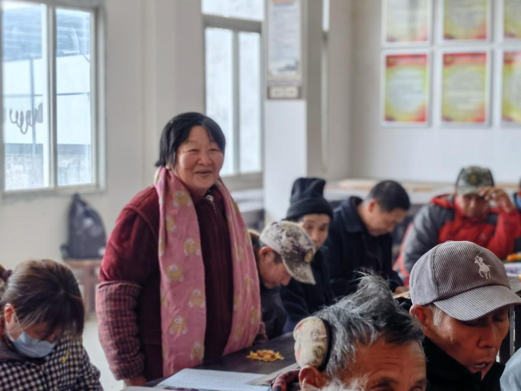 桂晓骏首先结合自己驻村工作体会汇报了新《村规民约》制定的背景、意义和草拟思路,并就条文中部分重点内容作了解释说明。随后,部分与会人员根据三德村实际情况谈了自己对新《村规民约》内容的理解和感受。第一届“社会公德奖”获奖者祝祥汉说:“祖辈留下的优良传统不能丢,通过《村规民约》这种形式流传下来很有必要。”第二届“家庭美德奖”获得者王秀英说:“在农村婆媳关系、家庭关系非常重要,我们要过好日子就要先把家庭搞好。现在党和国家关心我们这些贫困户,我们要用自己的双手勤劳致富。”村委会主任胡晓明说:“新《村规民约》涵盖面很广,涉及农村工作方方面面,有些要求虽然目前还无法做到,但这正是我们在日常工作中需要重点加以引导的。大家在工作中要主动宣传解释,做好群众引导工作。”
